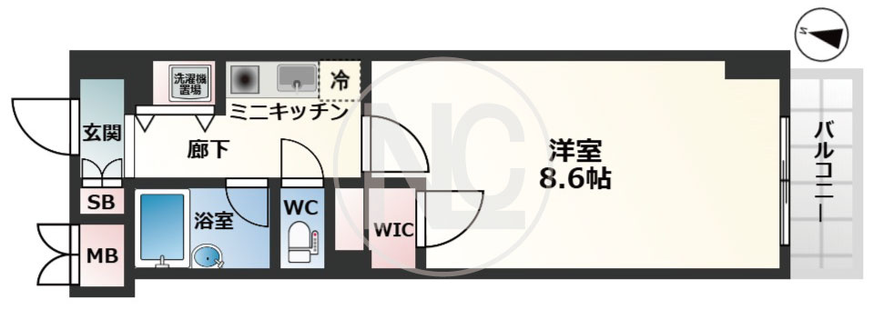 間取り:1K(27.28㎡)南向き